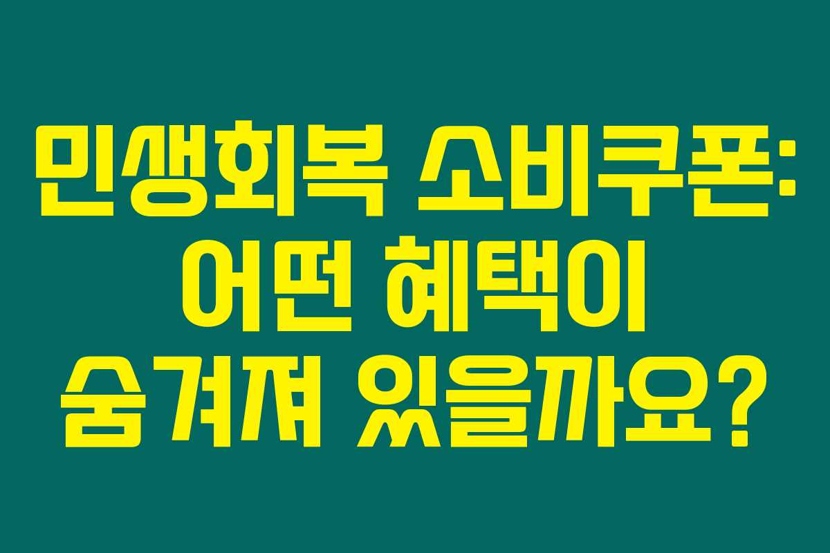 이번 민생회복 소비쿠폰의 다양한 혜택과 종류, 활용 방법을 잘 이해하시고, 자신에게 맞는 소비 패턴에 맞춰 현명하게 사용해보세요! 더욱 풍성한 혜택으로 똑똑한 소비생활을 이어가시길 바랍니다.
