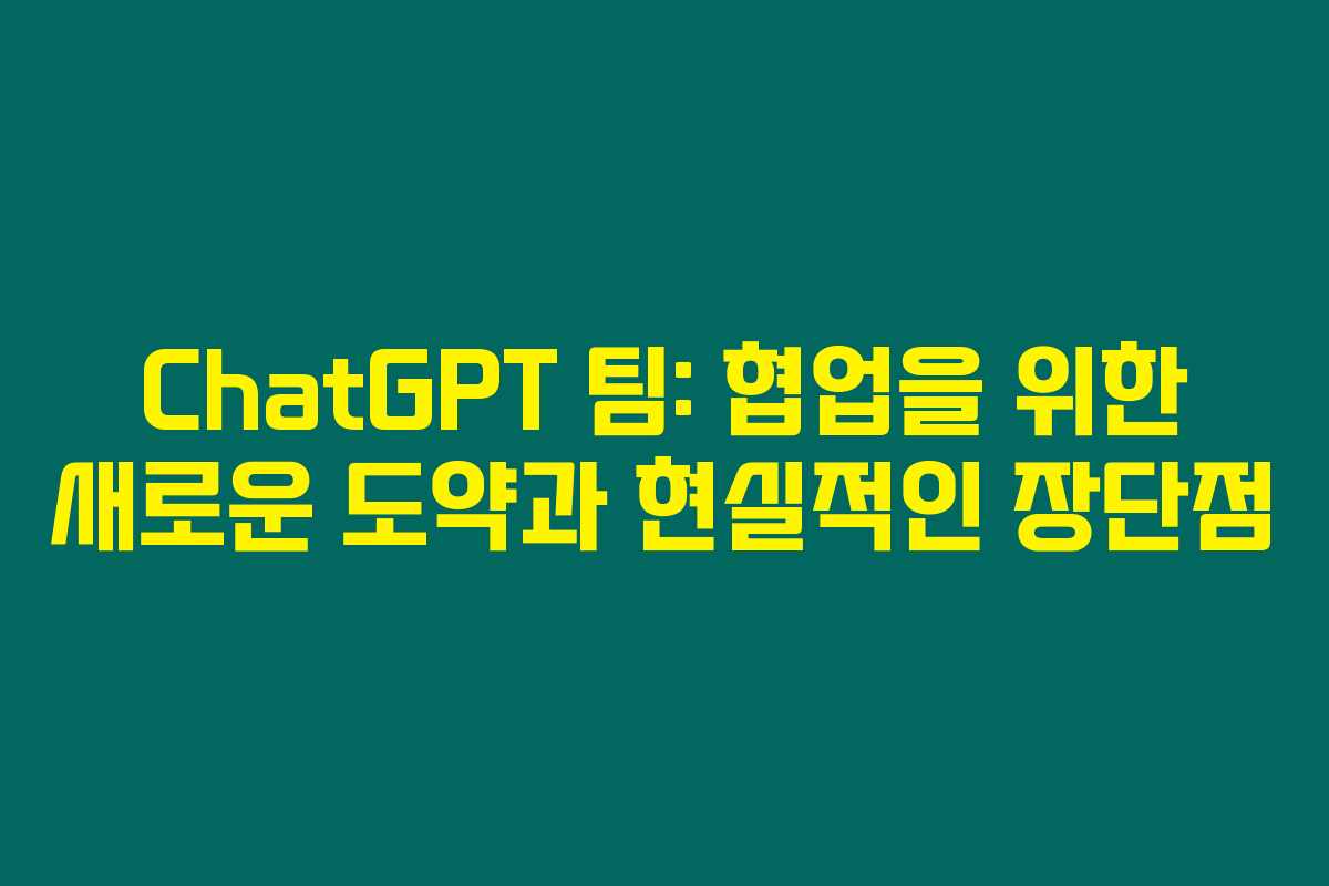 제가 직접 경험해본 결과로는 ChatGPT 팀의 실제 사용에 대한 장단점을 공유하고자 합니다. 이 글을 통해 ChatGPT 팀의 핵심 기능과 실제 활용 사례를 알아보겠습니다.