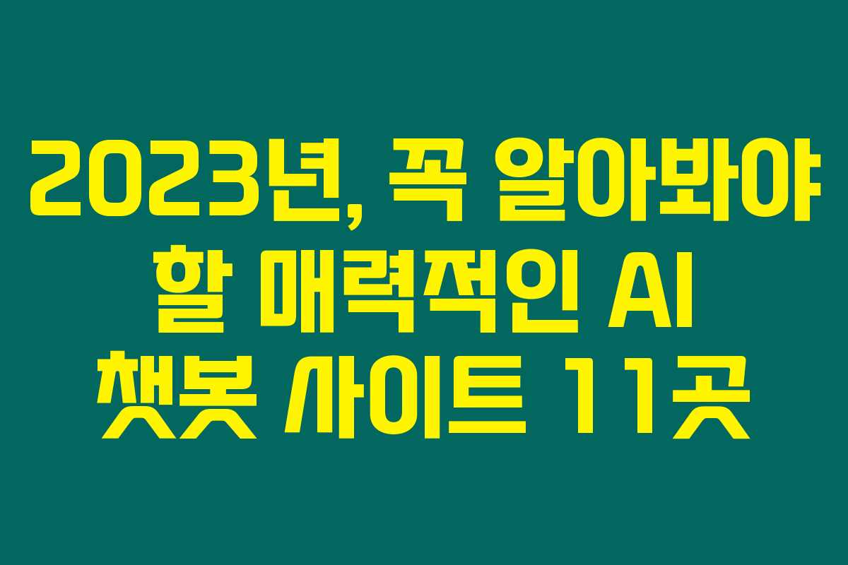 제가 직접 경험해본 결과, AI 챗봇은 단순 대화를 넘어 인공지능이 다양한 문제를 해결해줄 수 있는 훌륭한 도구로 자리잡고 있습니다. 이 글에서는 AI 챗봇 사이트를 종합적으로 정리하여, 여러분이 이를 활용해보는 데 도움이 되고자 합니다. 각각의 챗봇의 특징과 장단점, 가격 등을 상세히 소개할테니 기대해 주세요!