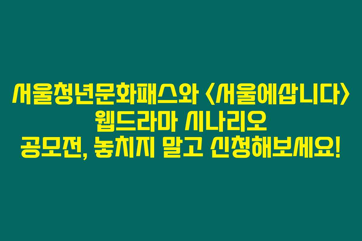 서울청년문화패스와 <서울에삽니다> 웹드라마 시나리오 공모전, 놓치지 말고 신청해보세요!