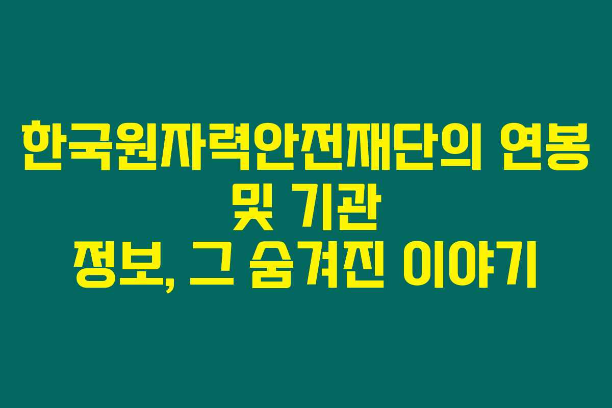 제가 직접 리서치한 바로는 한국원자력안전재단은 원자력과 방사선 안전에 관한 정책을 개발하고 연구를 수행하는 중요한 공공기관이에요. 이 글에서는 한국원자력안전재단의 연봉 내역, 기관 정보와 함께 이곳에서 일하는 것의 장단점에 대해 알아보려고 해요. 아래를 읽어보시면 한국원자력안전재단에 대한 깊이 있는 정보를 얻을 수 있을 거예요.