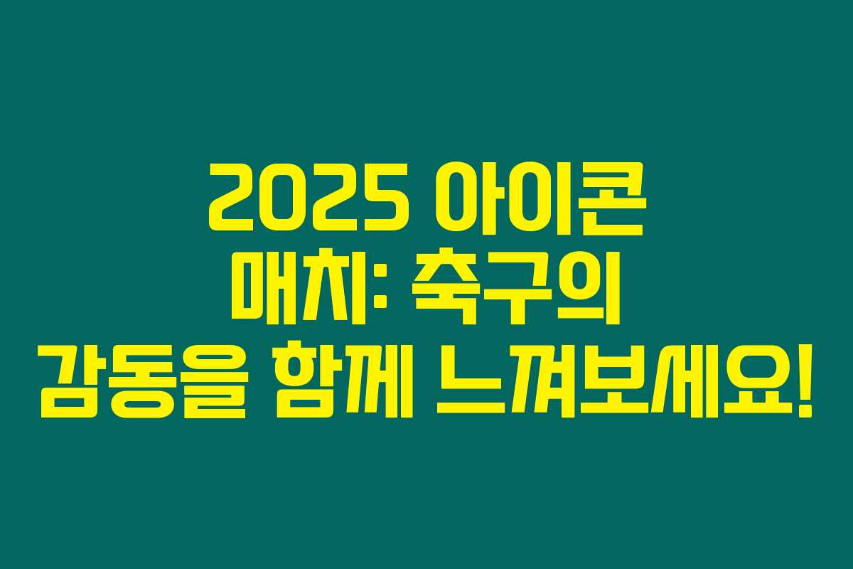2025 아이콘 매치가 9월 13일과 14일에 서울월드컵경기장에서 개최됩니다. 찬란한 축구 역사를 가진 레전드들이 함께 하는 이 특별한 경기를 미리 만나보시고, 예매 일정과 출연진 정보를 확인해보세요. 아래를 읽어보시면 행사에 대한 모든 정보가 담겨 있습니다.
