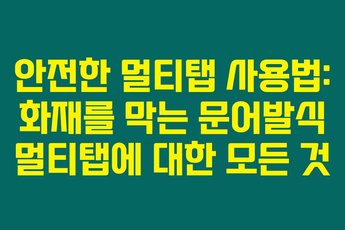 현대 생활에서 전자기기는 우리가 하루하루를 보다 편리하게 만들어주지요. 그 가운데 멀티탭은 필수품이라고 할 수 있는데요, 문어발식 멀티탭은 여러 기기를 동시에 연결할 수 있어 매우 유용하지만, 그 사용법과 원리를 반드시 알 필요가 있습니다. 아래를 읽어보시면 어떻게 하면 안전하게 멀티탭을 사용할 수 있는지에 대한 실용적인 정보를 얻으실 수 있습니다.
