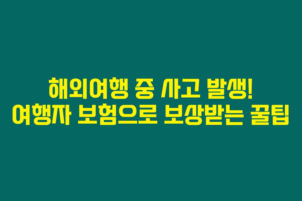 해외여행 중 예상치 못한 사고나 질병을 겪는 것은 큰 불안감을 줄 수 있습니다. 하지만 여행자 보험이 있다면 치료비와 소지품 손해를 보상받을 수 있답니다. 아래를 읽어보시면 해외에서 사고 발생 시 여행자 보험으로 보상을 청구하는 구체적 절차와 필요한 서류, 카카오톡을 통한 편리한 청구 방법에 대해 알아볼 수 있어요. 안전하고 든든한 여행을 위한 필수 가이드예요!