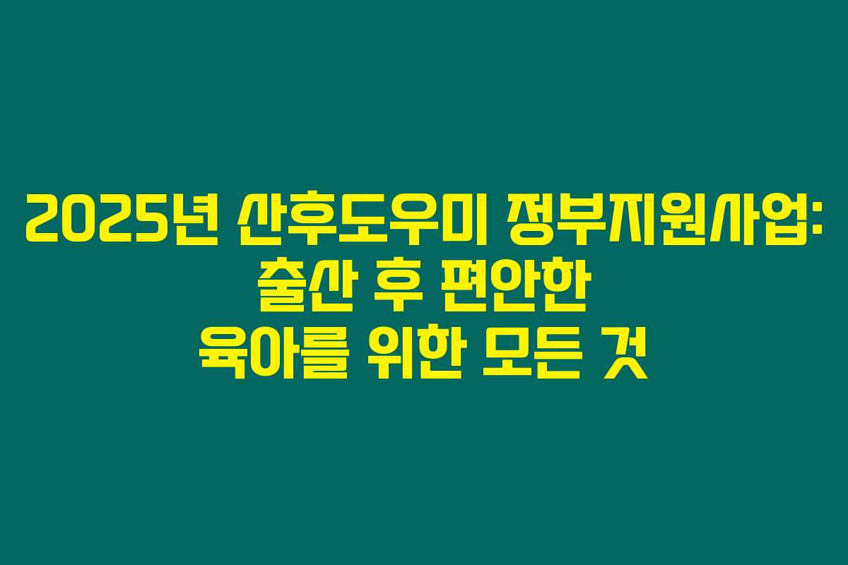 2025년부터 시행되는 산후도우미 정부지원사업은 출산 후 산모와 신생아의 건강한 회복을 돕기 위한 중요한 지원책입니다. 많은 가정이 이 사업을 통해 필요한 지원을 받을 수 있습니다. 아래를 읽어보시면 이 정책의 대상, 지원 기간, 신청 방법 및 지원 내용에 대한 상세한 정보를 보실 수 있습니다.