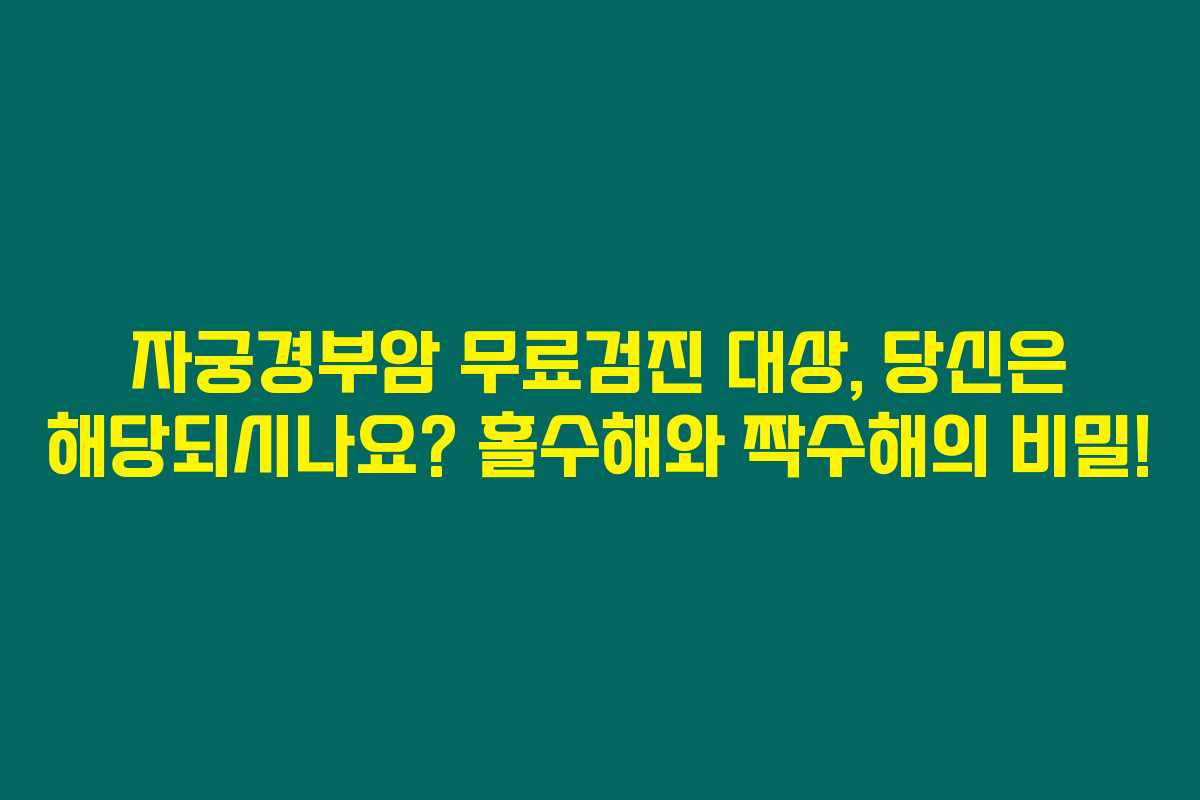2023년은 홀수해입니다. 이 해에는 홀수해에 태어난 만 20세 이상의 여성들이 무료로 자궁경부암 검진을 받을 수 있어요. 예를 들어, 2003년생인 분은 이제 무료 검진의 혜택을 받을 수 있다는 것이죠. 짝수년에는 짝수해 출생자, 홀수년에는 홀수해 출생자가 무료검진을 받는다는 점을 잘 기억해 두세요. 이런 규칙이 괜찮은 방법으로는, 매년 정기적인 검진을 유도하기 위한 것이라고 할 수 있어요.