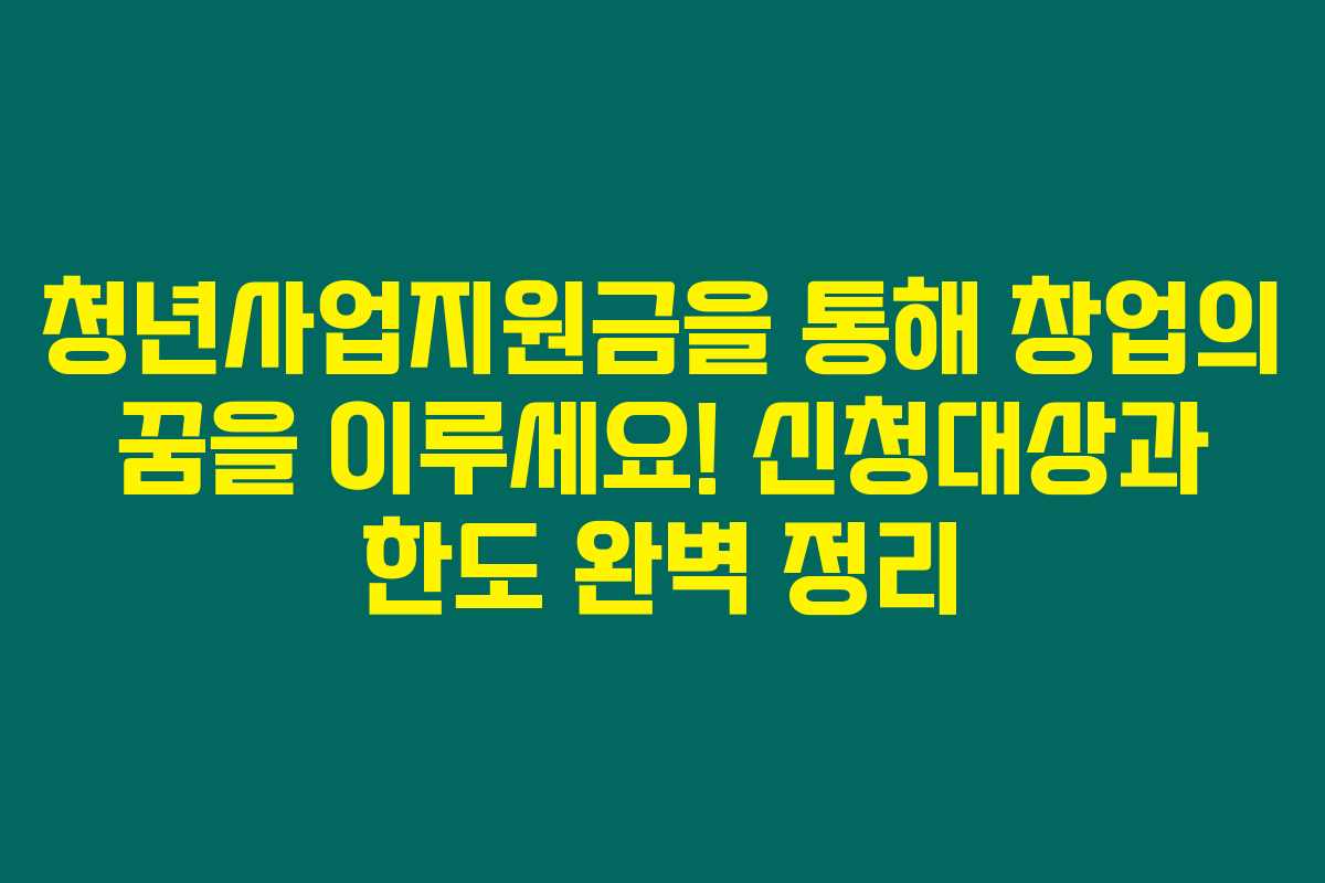 청년사업지원금을 통해 창업의 꿈을 이루세요! 신청대상과 한도 완벽 정리