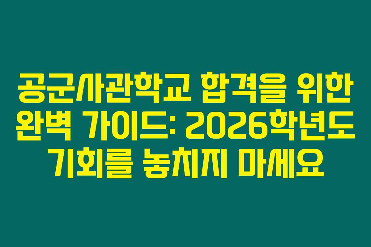 공군사관학교 합격을 위한 완벽 가이드: 2026학년도 기회를 놓치지 마세요