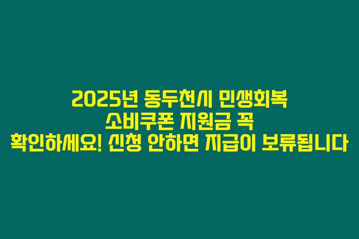 2025년 동두천시의 민생회복 소비쿠폰은 꼭 신청하도록 하세요. 지원금의 규모와 지급 기준이 모두 다르니 개인적으로 잘 체크하셔야 한답니다. 신청을 통해 합당한 지원금을 받는 게 중요하니! 이 글을 통해 재정 부담 완화에 도움이 되기를 바라며, 더 많은 정보가 필요하다면 추가로 검색해보세요.