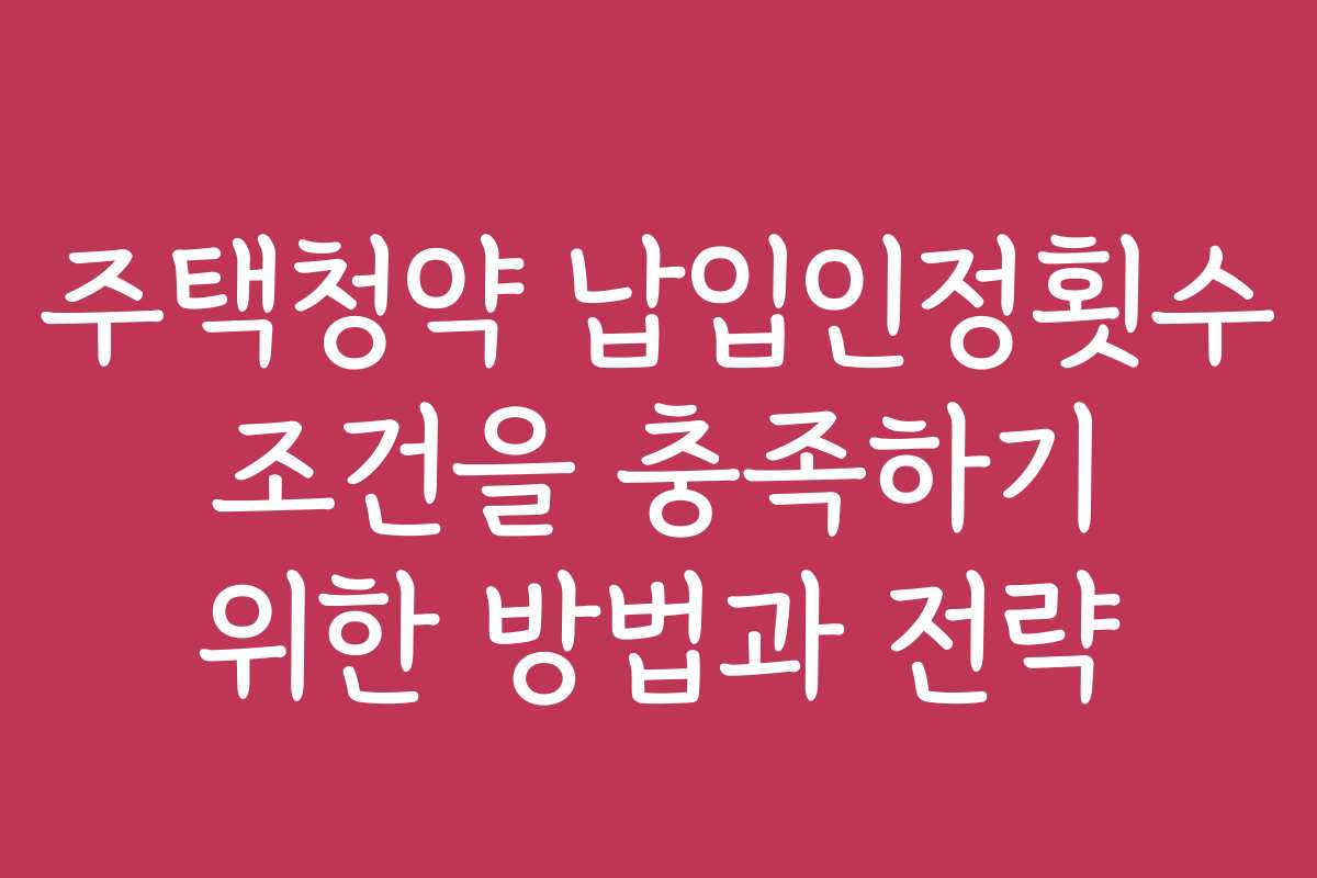 주택청약 납입인정횟수 조건을 충족하기 위한 방법과 전략은 무엇일까요?