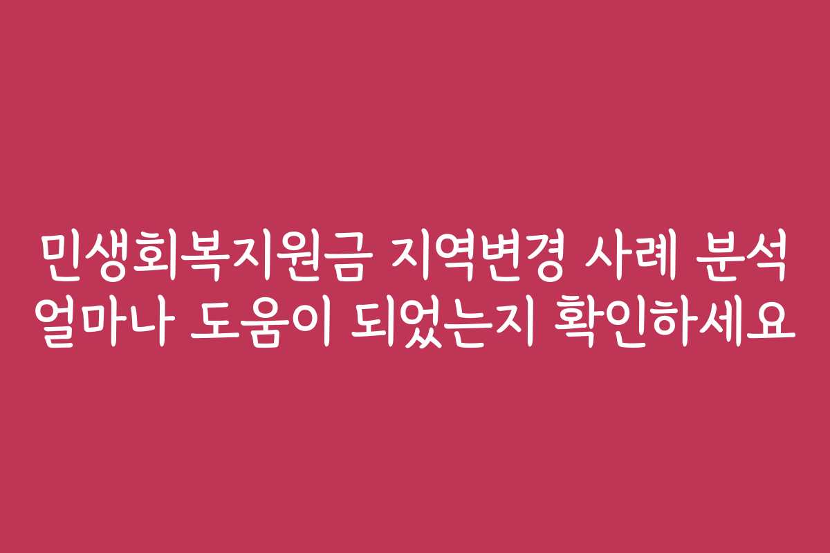 핵심·연관 키워드: 민생회복지원금, 지역변경, 사례 분석, 지원금 신청, 재정 계획, 생활비, 지원 혜택, 시민 지원, 경제적 안정, 지원금 효과, 지원금 후기.