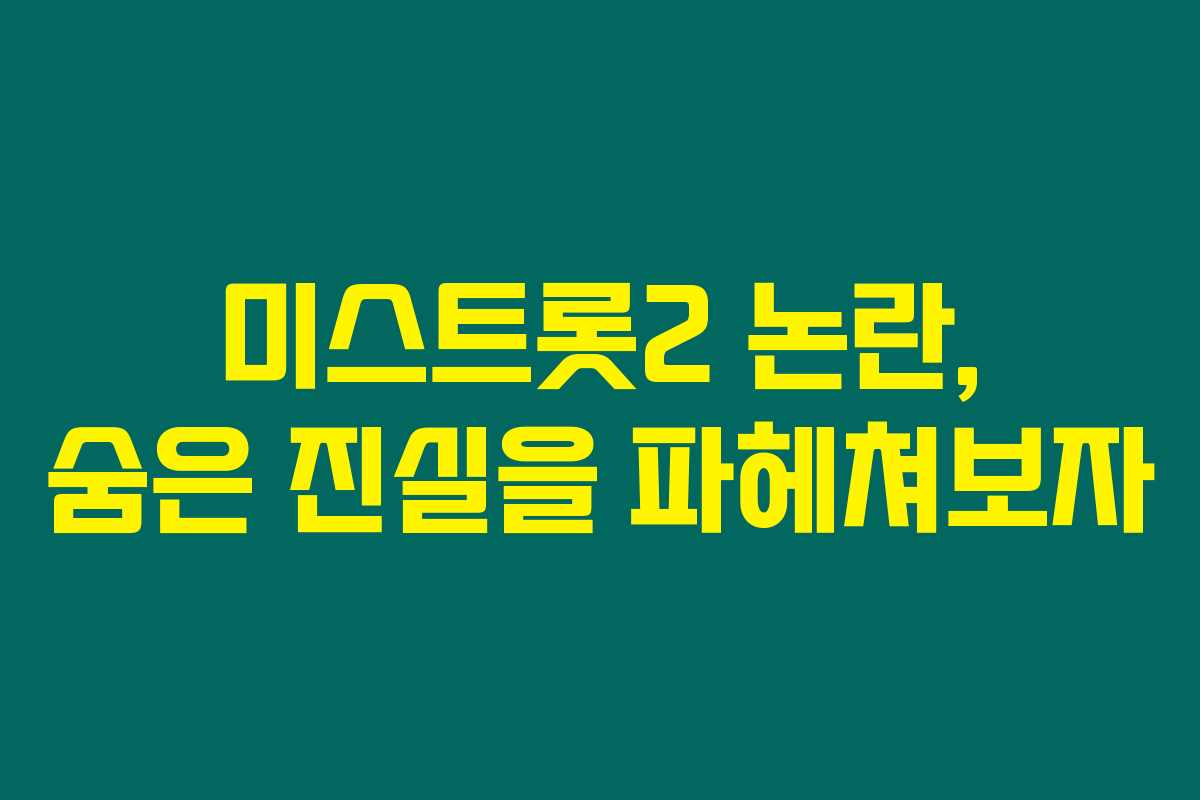 미스트롯2에 대한 관심이 뜨겁고 그만큼 논란도 쏟아지고 있습니다. 여러분은 미스트롯2 논란에 대해 얼마나 알고 계신가요? 이 프로그램이 사랑받는 만큼 여러 의혹과 논란이 제기되었답니다. 아래를 읽어보시면 미스트롯2가 겪은 주요 논란들을 자세히 다룬 내용을 확인할 수 있습니다.