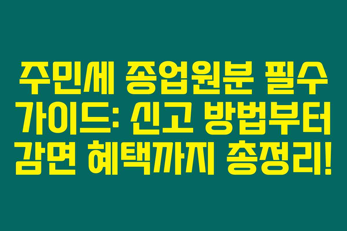 주민세 종업원분은 사업주로서 꼭 알아야 할 세금이에요. 이 안내를 통해 주민세 신고 방법과 납부 대상, 감면 혜택 등에 대한 중요한 정보를 확인하시길 바랍니다. 이러한 정보를 바탕으로 정확한 신고와 납부를 통해 세금 부담을 줄이며 경영 효율적으로 운영하시기 바랍니다!