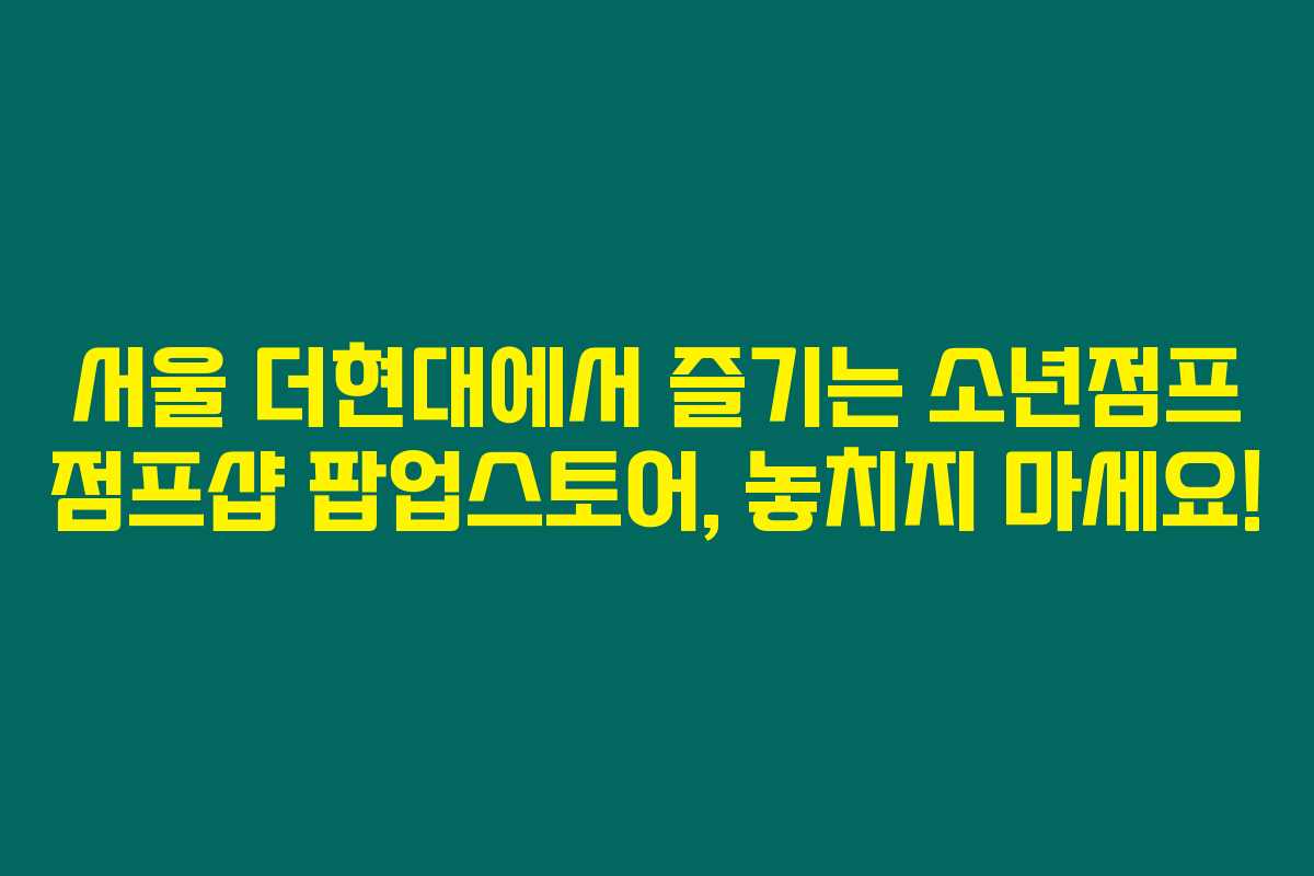 서울 더현대에서 즐기는 소년점프 점프샵 팝업스토어, 놓치지 마세요!