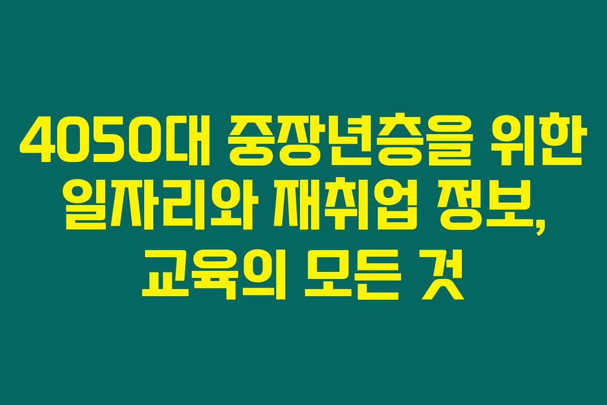 40대 후반에서 50대 초반이라면 자녀 교육비와 생활비로 항상 바쁜 모습일 거예요. 그런데 최근 경제 상황이 심각해서 일자리를 잃는 분들이 많아지고 있죠. 만약 당신이 4050대 중장년층이라면 재취업이 얼마나 어려운지 공감하실 거예요. 일을 찾는 것 자체가 하늘의 별 따기처럼 느껴질 때도 많죠. 정말 이런 상황, 괜찮을까요? 오늘은 중장년층을 위한 일자리 채용 정보와 재취업 지원, 그리고 교육 프로그램에 대한 유용한 정보들을 알려 드릴게요.