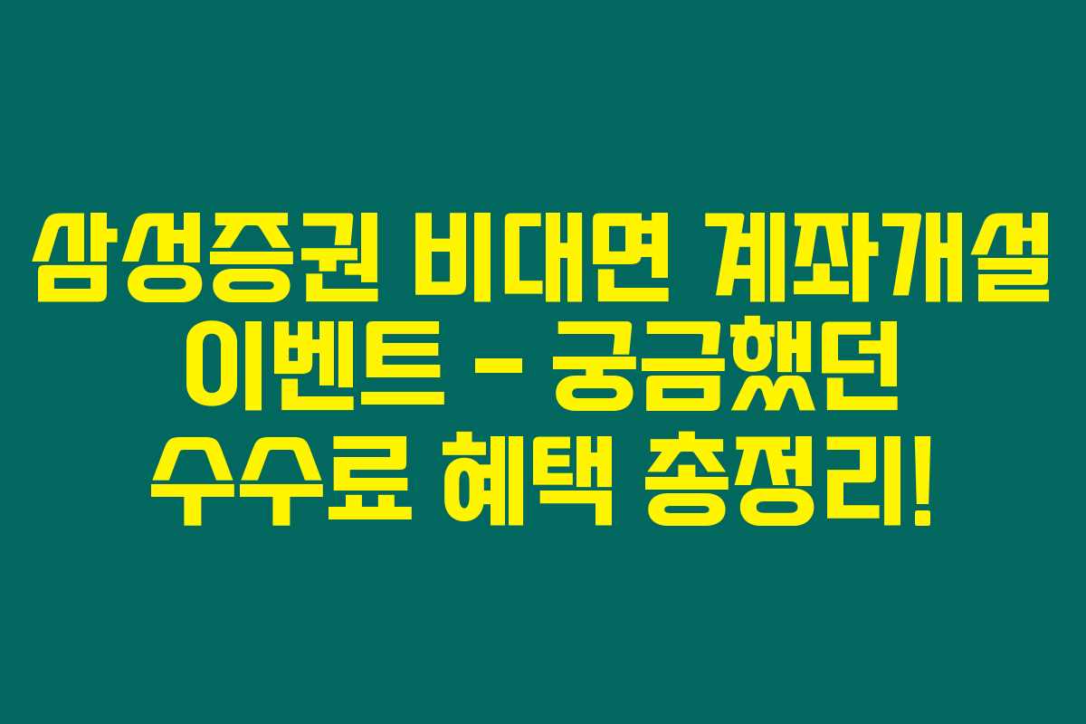 비대면 계좌를 개설하고 싶으신가요? 특히 삼성증권의 수수료 혜택이 괜찮다고만 들으셨다면 이 글에서 그 모든 궁금증을 해결해 드리겠습니다. 삼성증권의 비대면 계좌 개설 이벤트는 실제로 많은 분들에게 도움이 되는 기회에요. 비록 주식 거래를 시작할 때 어떤 혜택이 있는지 모르시는 분들이 많으시지만, 여기 아래를 읽어보시면 분명 많은 도움이 될 겁니다.