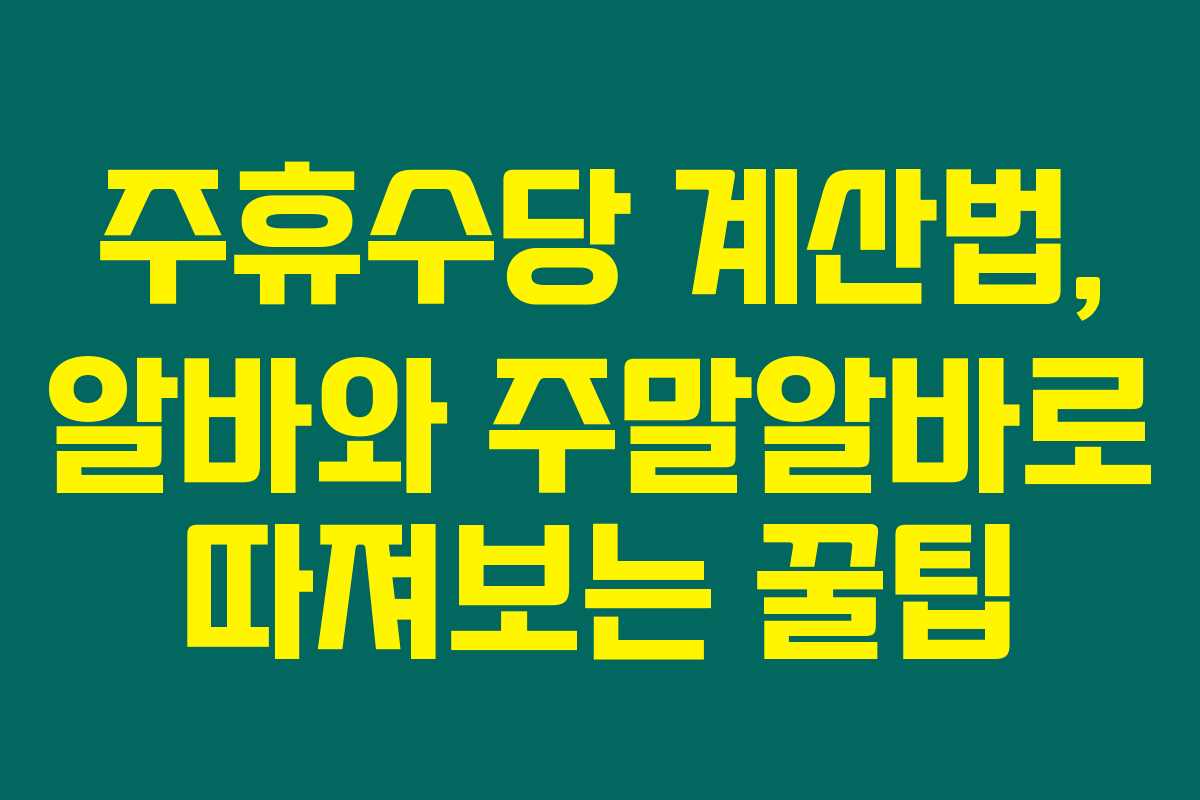 주휴수당 계산법을 잘 알고 계신가요? 주말알바나 단기 알바를 하신 분이라면 더욱더 중요한 정보랍니다. 주휴수당은 우리에게 지급되는 급여 이외의 추가 보상인데요. 만약 주휴수당을 제대로 계산하지 않고 있다면, 소중한 돈을 놓치고 있을지도 몰라요. 주휴수당의 계산법과 이를 확인할 수 있는 계산기 사용법을 아래에서 자세히 알아보세요!
