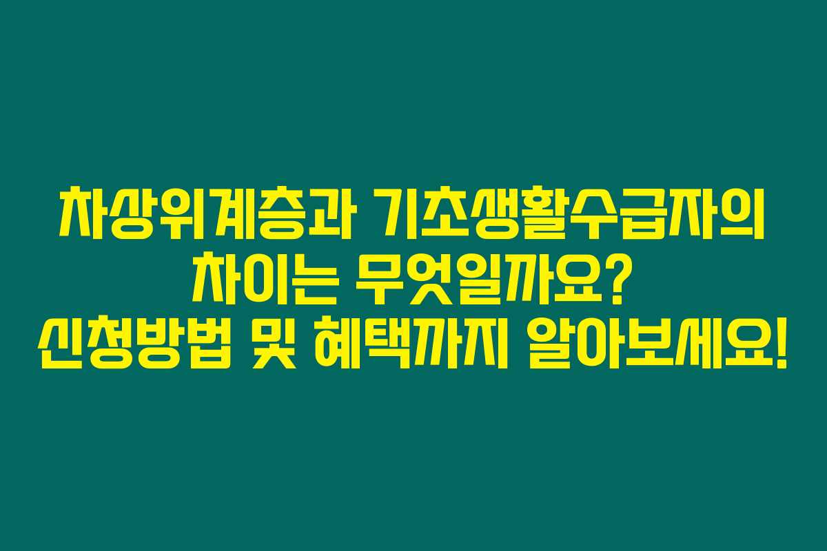차상위계층이 어떤 조건을 갖춰야 하는지 궁금하신가요? 기초생활수급자와 어떤 차이점이 있는지 몰라 고민하는 분들도 많죠. 아래를 읽어보시면 두 제도의 특징과 신청방법 그리고 다양한 혜택을 상세히 알아보실 수 있습니다.