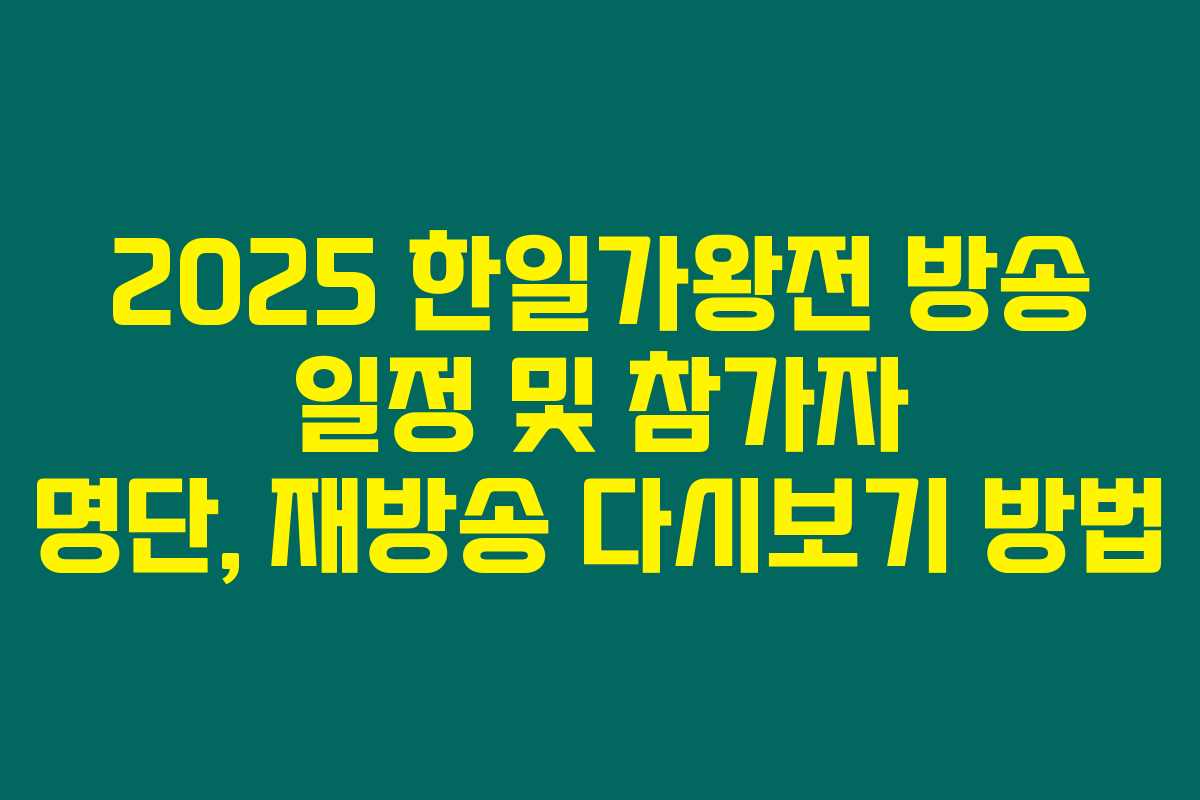 2025 한일가왕전은 오는 8월 중순에 MBN을 통해 방영될 예정입니다. 방송 후에는 공식 홈페이지와 OTT 플랫폼에서 다시보기를 제공한다고 하니, 놓치지 마세요!
