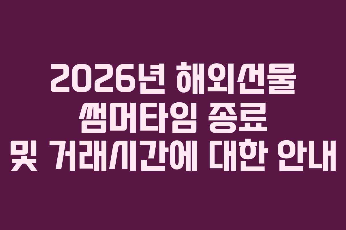 2026년 해외선물의 썸머타임 종료일은 11월 6일입니다. 이 날 이후로는 기존의 썸머타임 적용이 해제되며, 거래시간이 변경됩니다. 특히, 11월 7일 월요일부터는 썸머타임이 적용되지 않은 시간으로 미장 거래가 시작되며, 이는 오후 11시 30분에 시작됩니다.