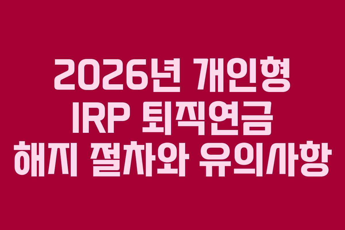 2026년 개인형 IRP 퇴직연금 해지 절차와 유의사항