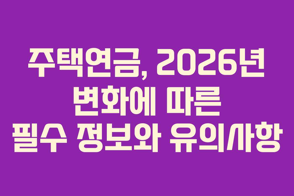 주택연금, 2026년 변화에 따른 필수 정보와 유의사항
