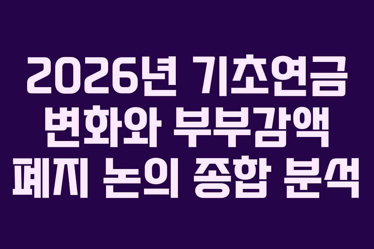 2026년 기초연금 제도는 여러 변화가 예상되며, 특히 부부감액 제도의 폐지 논의가 주목받고 있습니다. 이에 따라 기초연금 선정기준액이 조정되고, 수급 대상자에게 미치는 영향도 커질 것으로 보입니다. 이러한 변화는 고령층의 삶의 질 향상에 기여할 것으로 기대됩니다.