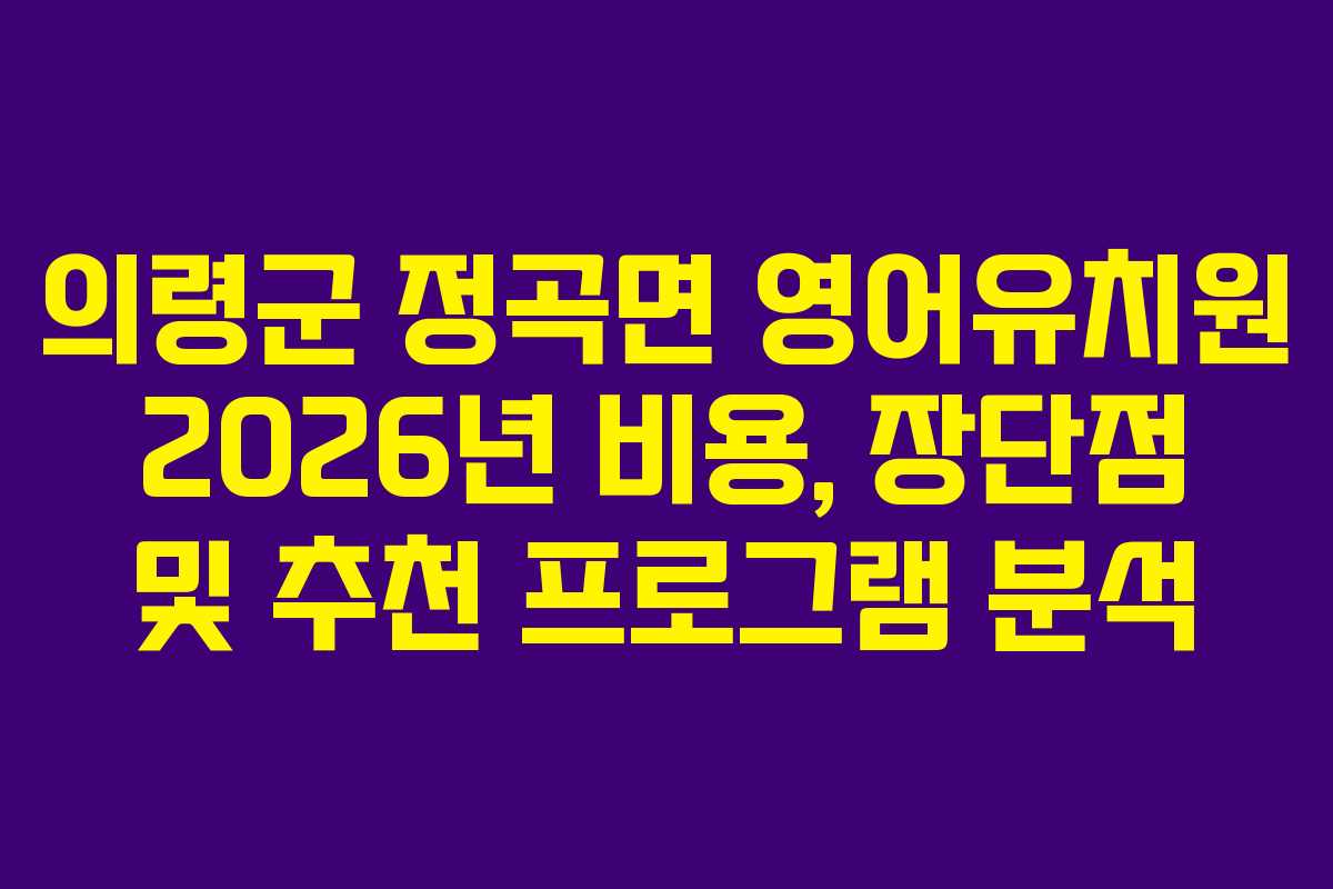 의령군 정곡면 영어유치원 2026년 비용, 장단점 및 추천 프로그램 분석