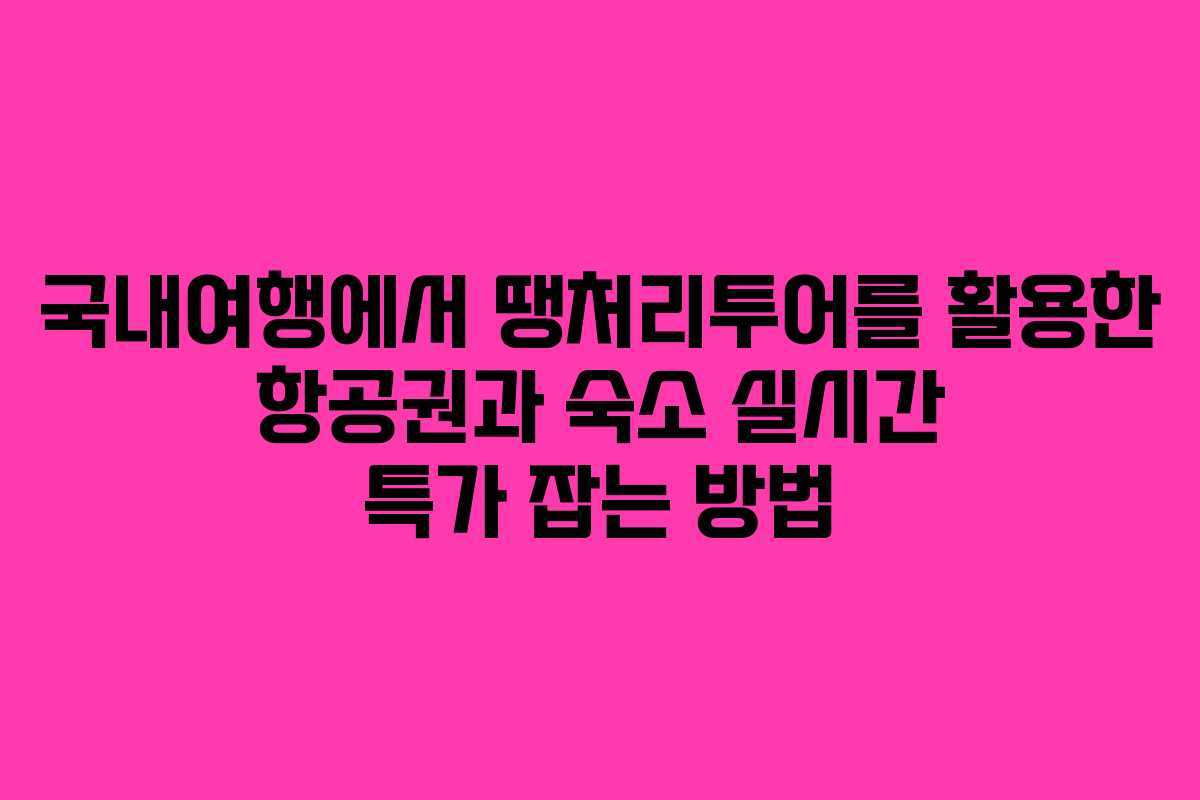 국내여행을 계획하면서 항공권과 숙소 예약 비용을 절감하고 싶다면 땡처리투어를 활용하는 것이 좋은 선택입니다. 특히 2026년 기준으로 여행 수요가 증가하면서 항공사 및 숙박업체들은 남은 좌석과 객실을 특가로 판매하는 경향이 더욱 두드러지고 있습니다. 본 글에서는 땡처리투어를 통해 실시간 특가를 확인하는 방법과 예약 전략을 총정리하였습니다. 이를 통해 항공권 예약 트렌드, 실시간 알림 설정, 가격 비교 팁 등을 포함하여 여행 계획에 유용한 정보를 제공하고자 합니다.