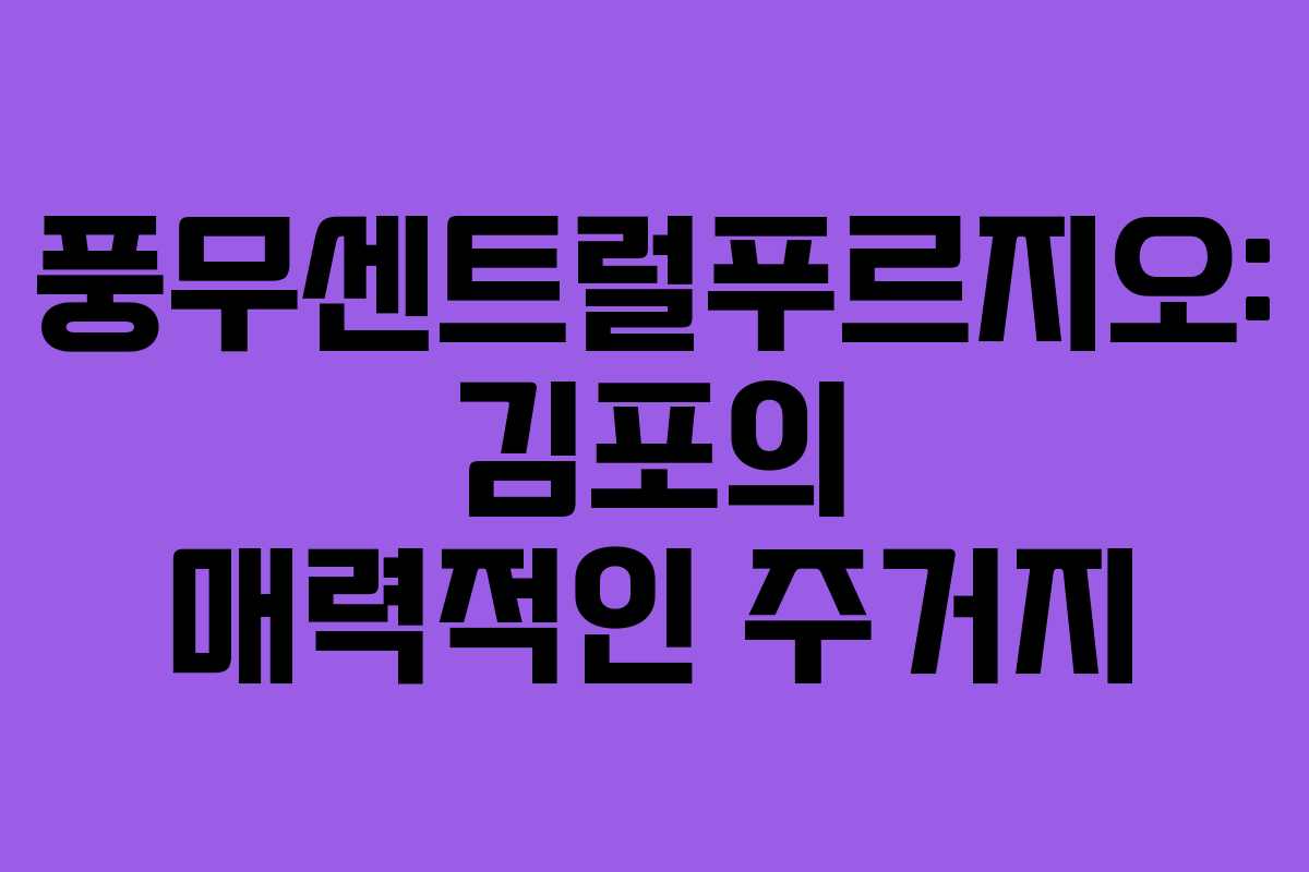 김포시 풍무센트럴푸르지오는 최근 대중교통 인프라 확장과 함께 주목받고 있는 아파트 단지이다. 김포골드라인과 지하철 5호선의 연장 소식으로 인해 이 지역의 부동산 시장이 활기를 띠고 있다. 지금부터 풍무센트럴푸르지오의 다양한 정보와 함께 김포시의 부동산 동향을 살펴보자.