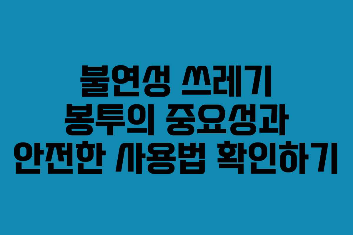 올바른 불연성 쓰레기 봉투의 사용 방법은 다음과 같습니다. 안전하고 효율적인 처리를 위해 각 단계를 잘 따라야 합니다.