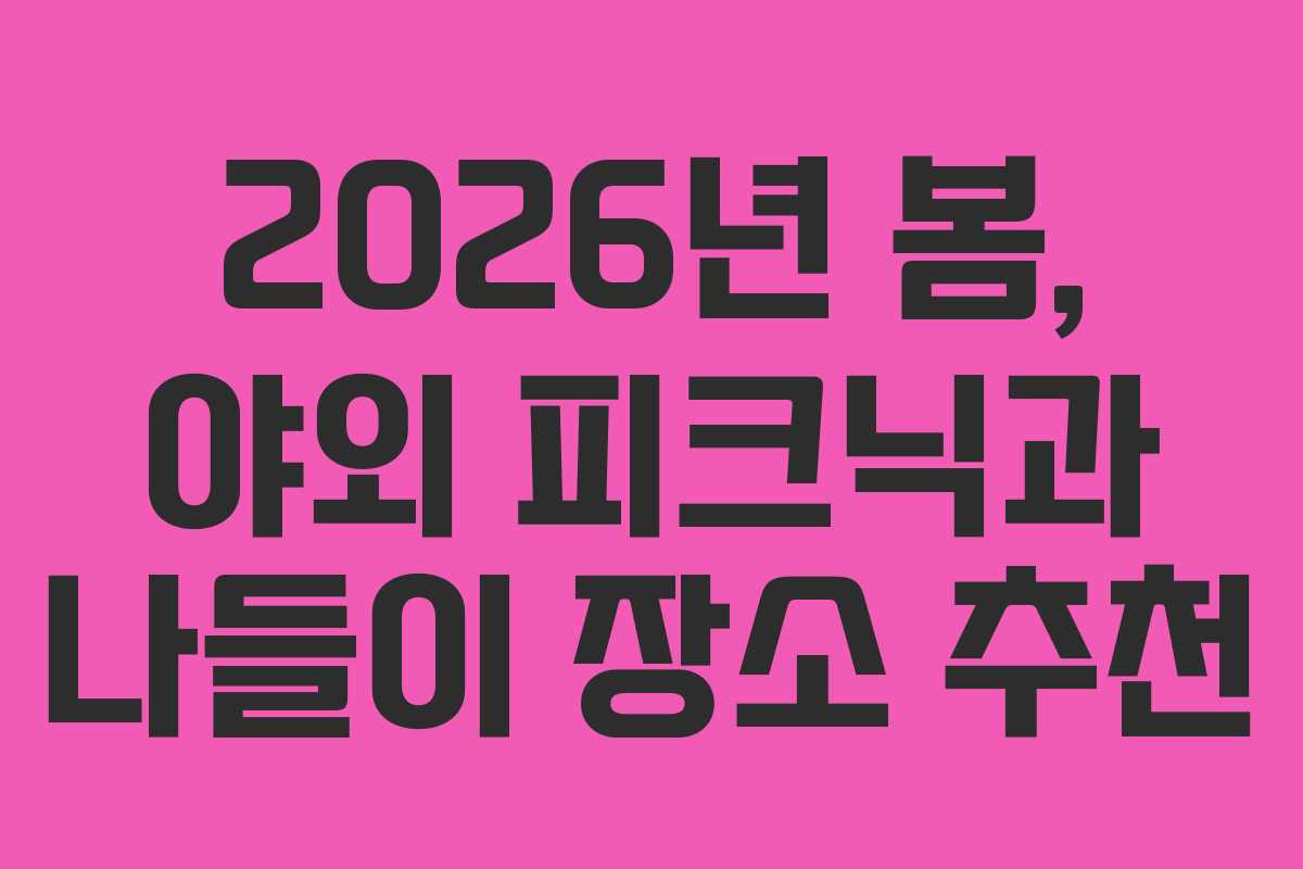 2026년 봄에는 서울숲, 한강 뚝섬유원지, 양평 두물머리, 부산 황령산 숲속피크닉존 등이 추천됩니다. 각 장소마다 특색이 있어 다양한 경험을 할 수 있습니다.