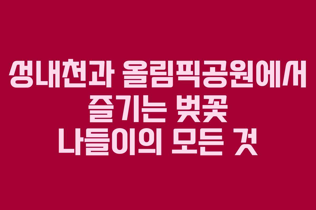 봄이 오면 많은 사람들이 벚꽃을 보기 위해 나들이를 떠납니다. 특히 성내천과 올림픽공원은 가족 단위 방문객들에게 인기가 많은 장소입니다. 2026년에는 더욱 특별한 벚꽃 시즌이 기대되며, 이 글에서는 벚꽃 구경을 위한 팁과 함께 성내천과 올림픽공원의 매력을 소개하겠습니다.