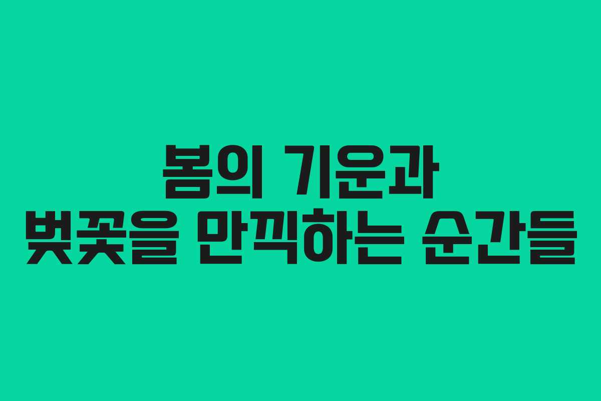 봄의 정취를 만끽하는 것은 단순히 벚꽃을 보는 것 이상의 의미가 있다. 그것은 자연과의 교감이자, 일상 속에서 잊고 지냈던 여유로움을 되찾는 과정이다. 앞으로도 매년 봄마다 이곳을 찾아 벚꽃을 즐기며, 삶의 작은 행복을 느끼고 싶다.