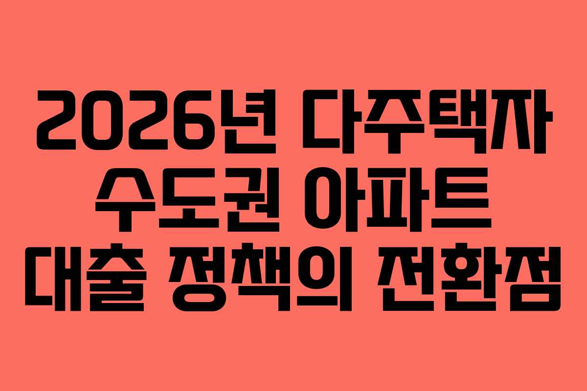 2026년 다주택자 수도권 아파트 대출 정책의 전환점