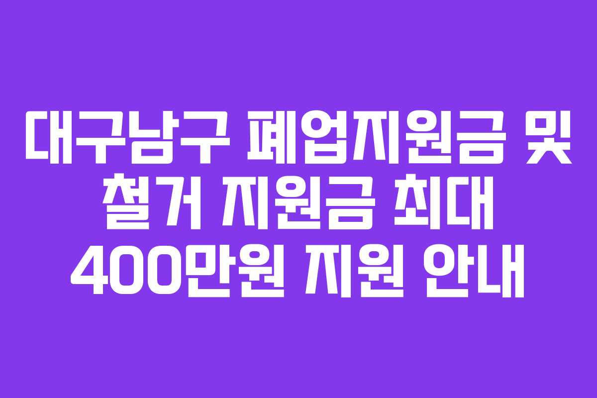 대구남구에서는 경제적 어려움으로 폐업을 고려하는 소상공인을 위해 최대 400만원의 지원금을 제공하고 있습니다. 이 지원금은 폐업 후 회복을 돕고, 특히 철거 비용 등으로 활용될 수 있습니다. 본 글에서는 2026년 기준으로 폐업지원금 신청 방법, 조건 및 필요한 서류에 대해 자세히 안내합니다.