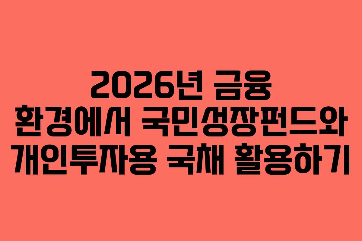 2026년은 대한민국 금융 시장이 전환점을 맞이하는 해로, 국민성장펀드와 개인투자용 국채가 본격적으로 운영된다. 이번 글에서는 두 상품의 구조와 혜택을 깊이 있게 분석하여 투자 기회를 최대한 활용하는 방법을 소개하겠다.