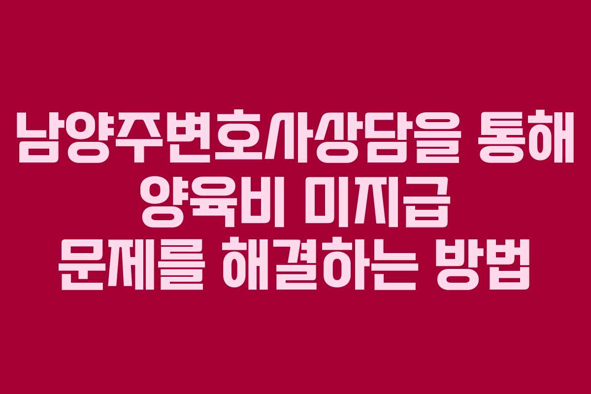 양육비 지급의 법적 의무와 남양주변호사상담의 필요성