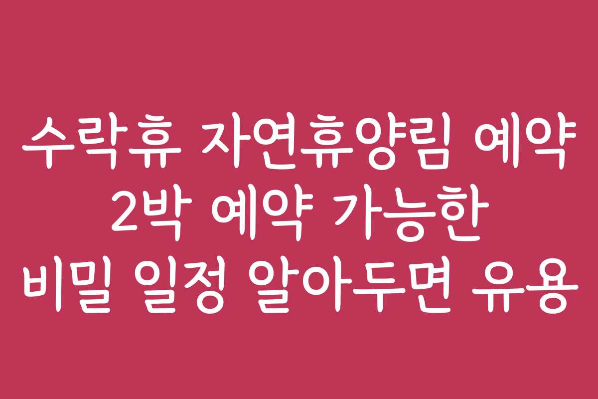 자연 속에서의 힐링을 원하지만, 수락휴 자연휴양림 예약이 어려웠던 경험이 있으신가요? 혹은 2박 예약, 비밀 일정을 활용해서 더 쉽게 예약하고 싶은 분들을 위한 팁이 필요하신가요? 이 글에서는 수락휴 자연휴양림 예약 2박 예약 가능한 비밀 일정에 대해 알아보고, 문제를 해결할 수 있는 방법을 제안합니다.
