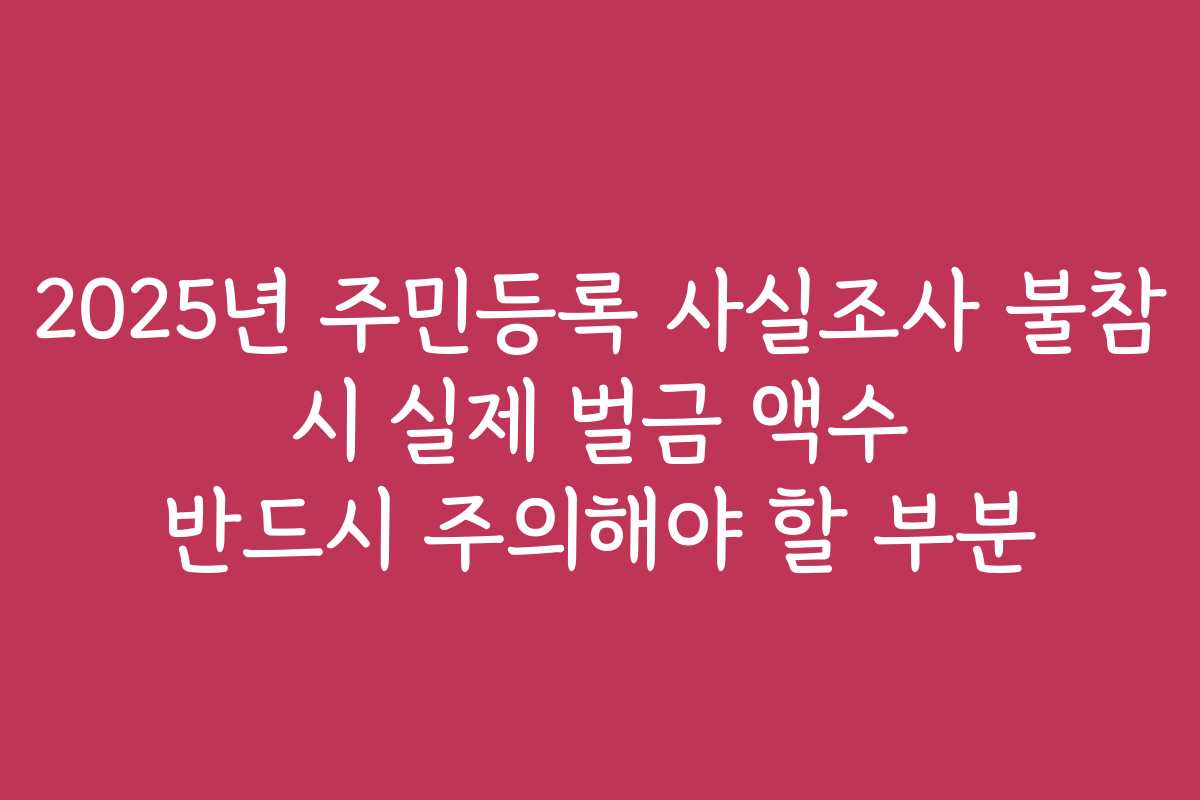 2025년 주민등록 사실조사 불참 시 실제 벌금 액수 반드시 주의해야 할 부분