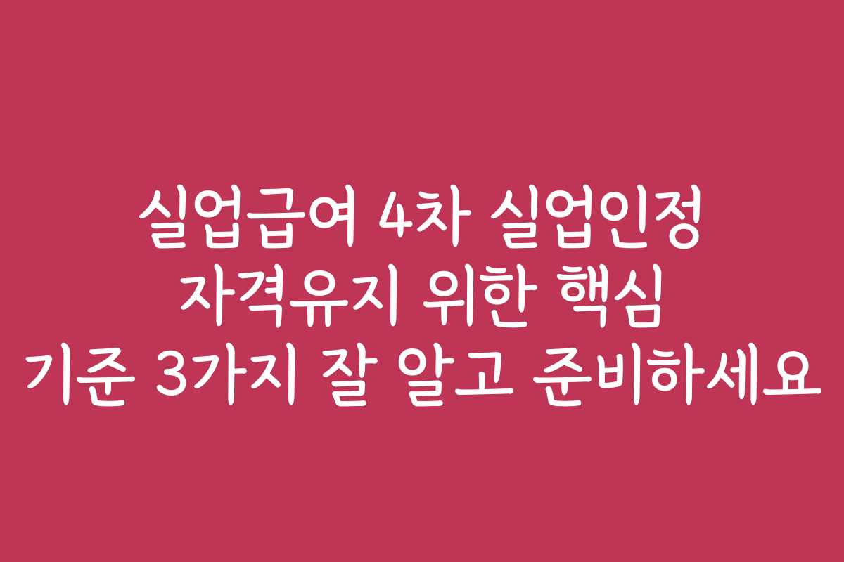 A: 실업급여 4차 실업인정 자격 유지를 위해서는 적극적인 구직활동, 취업 지원 교육 이수, 고용안정성을 고려한 일자리 탐색이 필요합니다.