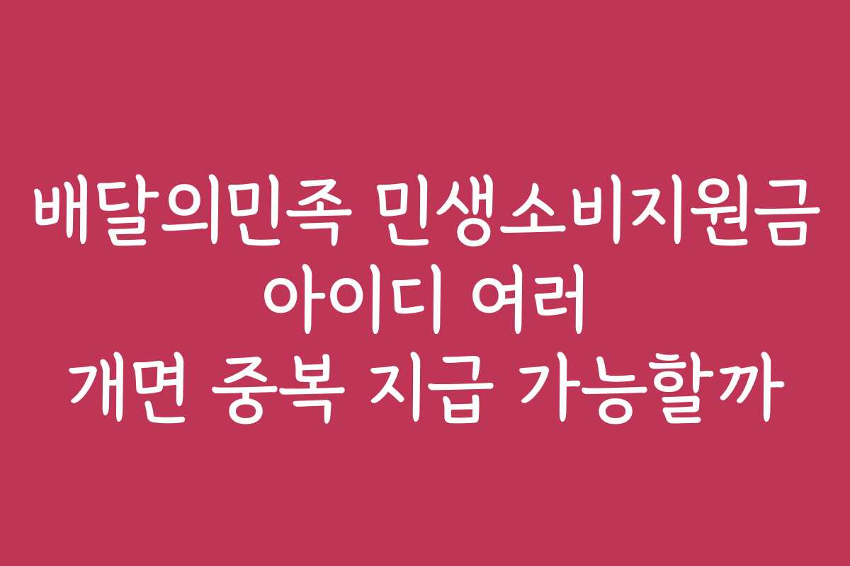 배달의민족 민생소비지원금 아이디 여러 개로 중복 지급이 가능할지 궁금한가요? 이 글에서는 해당 지원금의 특징과 중복 수령에 대한 이슈를 다뤄보겠습니다.