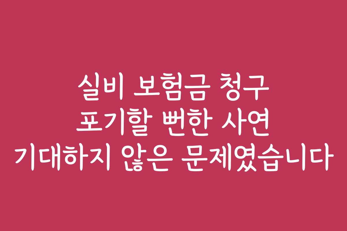 실비 보험금 청구 포기할 뻔한 사연 기대하지 않은 문제였습니다