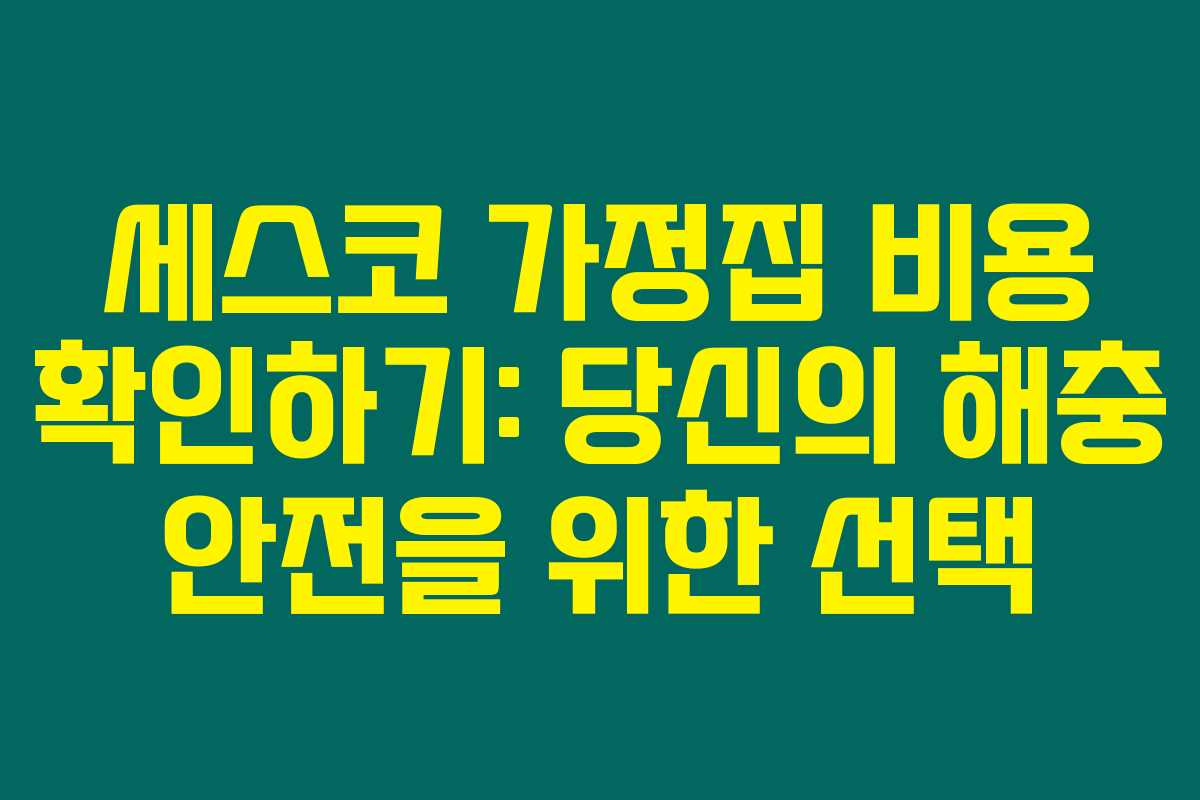 세스코의 가정집 서비스는 해충 방제를 위한 최적의 선택이에요. 비용에 대한 충분한 이해를 바탕으로 해충 문제를 미리 예방해보는 건 어떨까요? 꾸준한 관리로 더욱 안전한 집을 만들어 보세요!