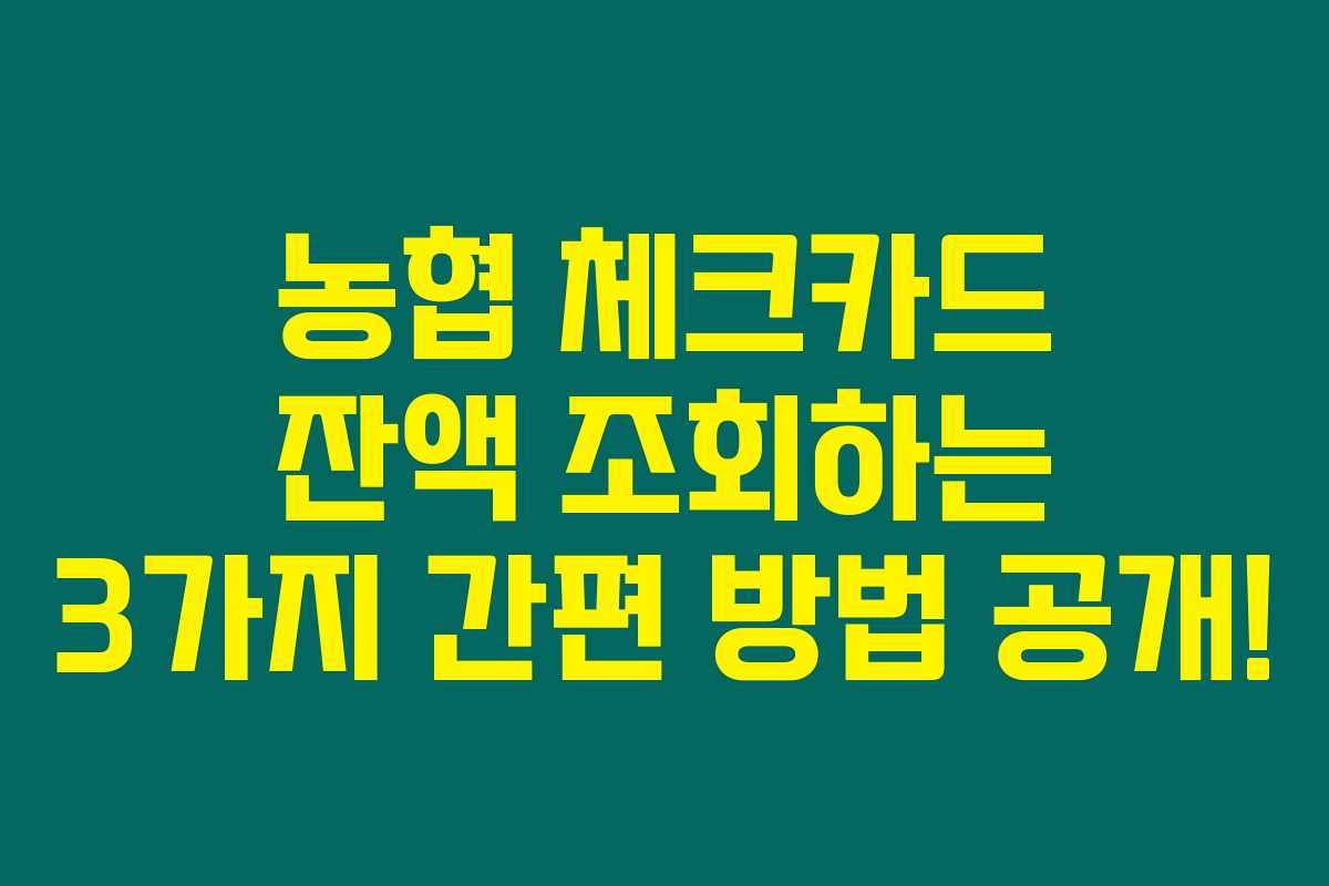 농협 체크카드의 잔액 확인 방법을 알아보고 싶으신가요? 아래를 읽어보시면 빠르고 간편하게 농협 계좌 잔액을 조회할 수 있는 방법 3가지를 소개해 드릴게요. 잔액 조회가 의외로 간단하답니다!