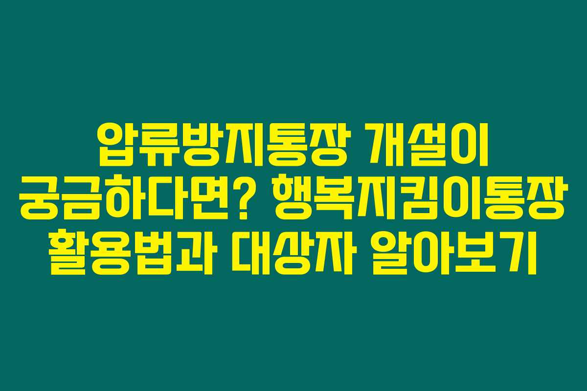 압류방지통장인 행복지킴이통장은 경제적 어려움을 겪고 있는 이들에게 큰 무기가 될 수 있습니다. 올바른 정보를 바탕으로 안전하게 통장을 개설하고 준비된 자산을 보호할 수 있기를 바랍니다.