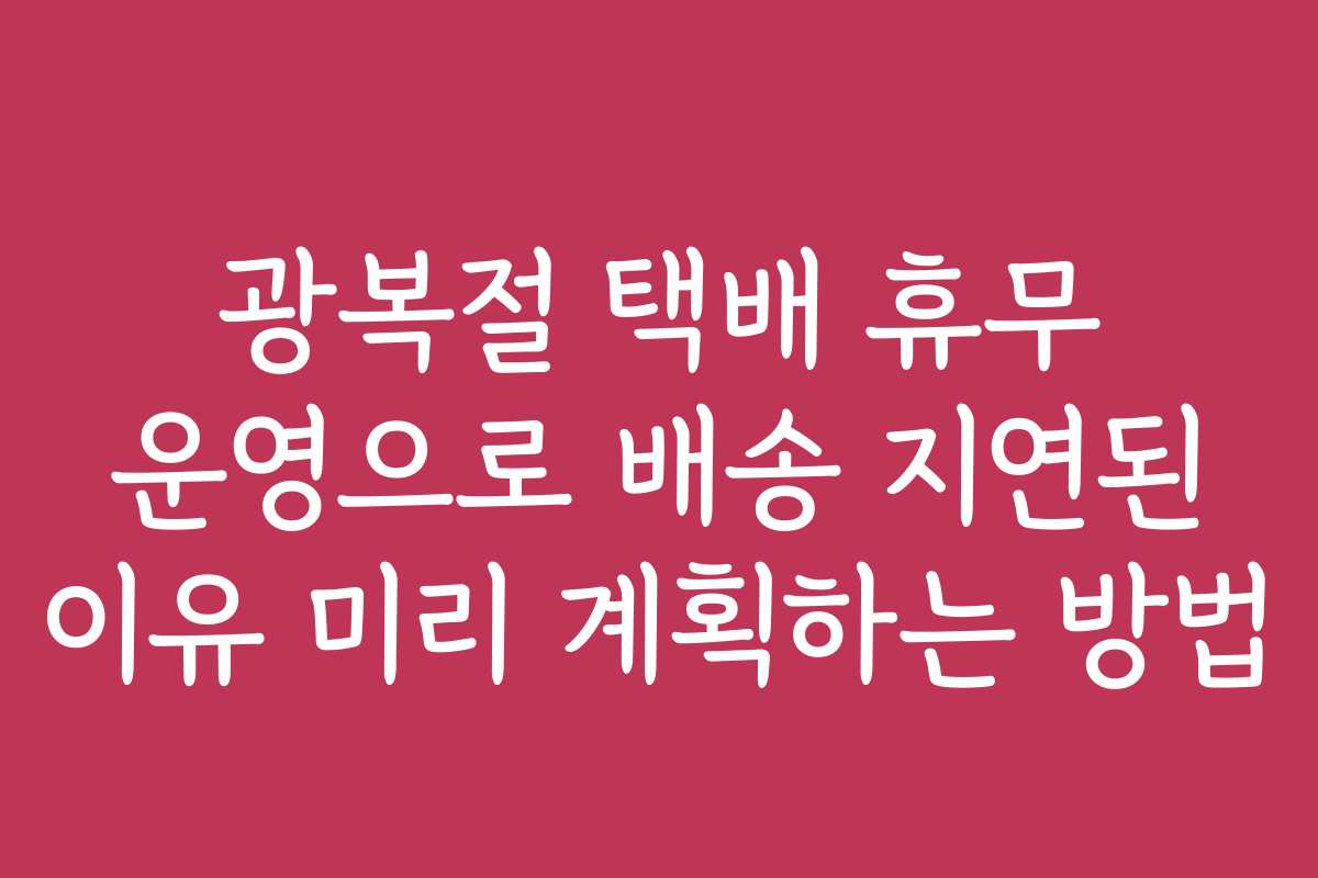 광복절 택배 휴무 운영으로 배송 지연된 이유 미리 계획하는 방법