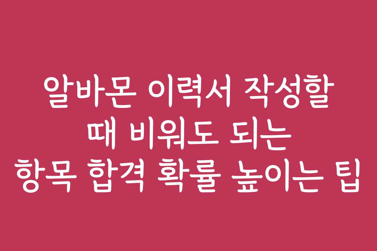 키워드: 알바몬, 이력서, 작성 팁, 비워도 되는 항목, 합격 확률, 아르바이트, 경력, 자격증, 효과적인 이력서, 자기소개서, 지원하기