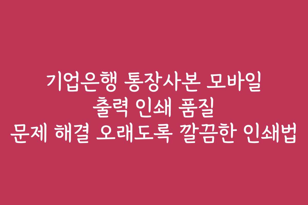 기업은행, 통장사본, 모바일 출력, 인쇄 품질, 해상도, 프린터 설정, 인쇄 오류, 금융 서류, 팁, 도구