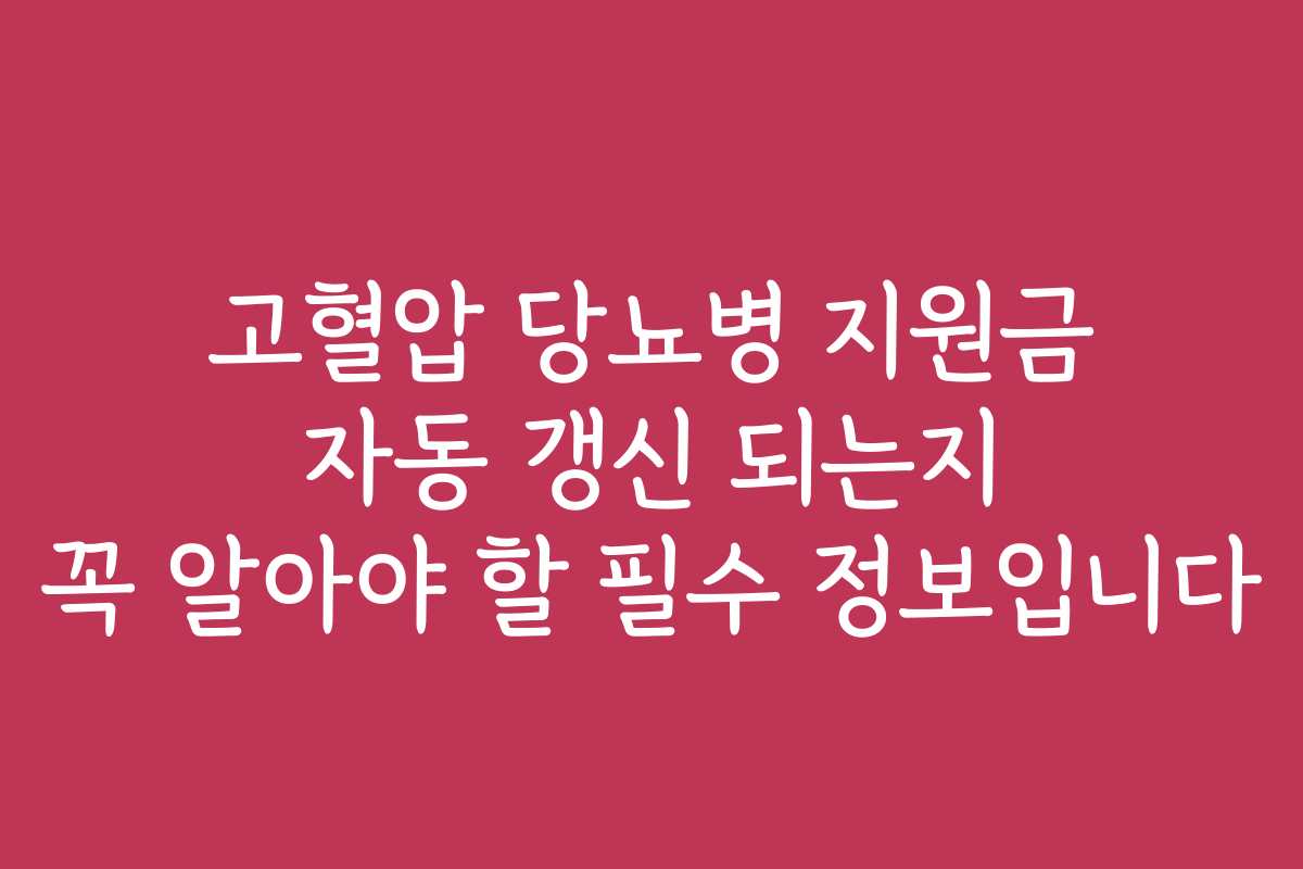 고혈압 당뇨병 지원금 자동 갱신 되는지 꼭 알아야 할 필수 정보입니다